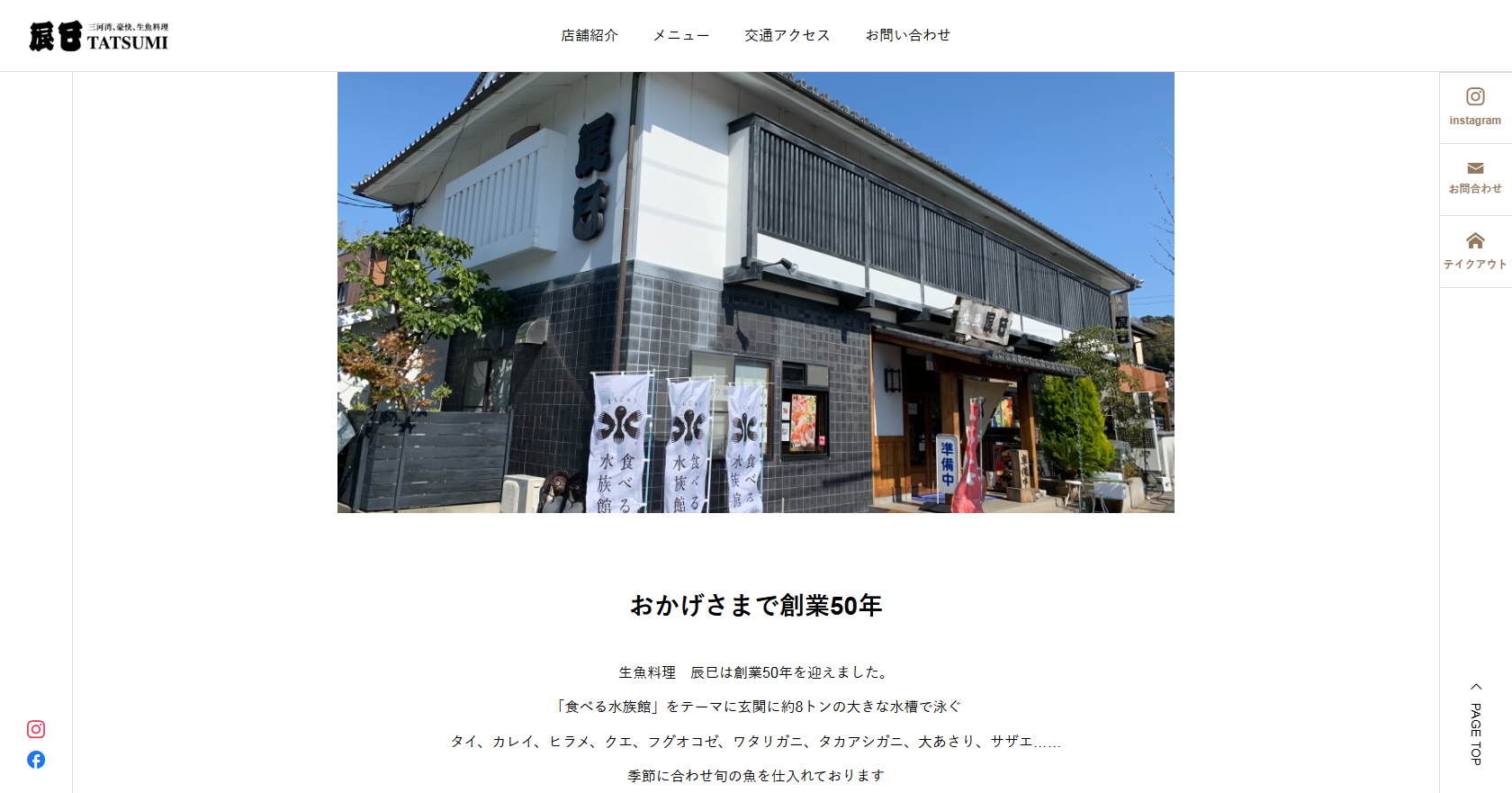 愛知県蒲郡市の生魚料理 辰巳様のホームページをリニューアルいたしました